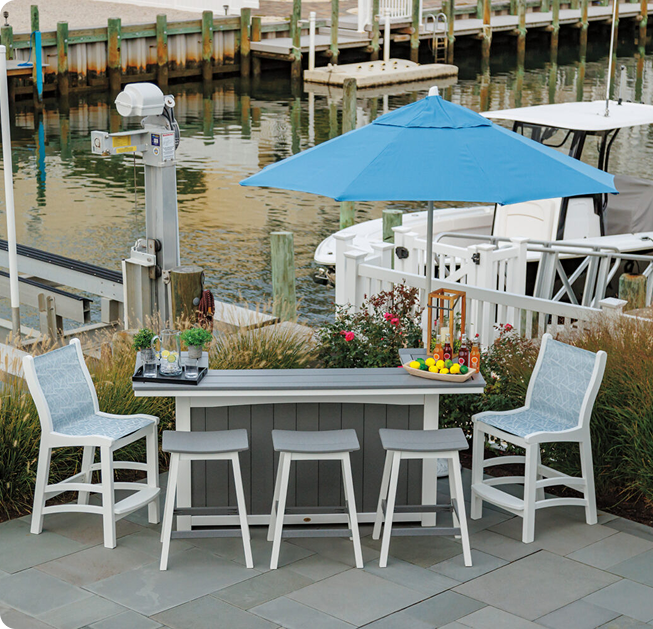 Every bar and stool we offer is a masterclass in design and durability. Made with premium-grade materials like marine-grade polymers, powder-coated aluminum, and all-weather woods, our pieces aren’t “weather resistant”—they’re weather warriors. Rain, snow, salt air? Bring it on.